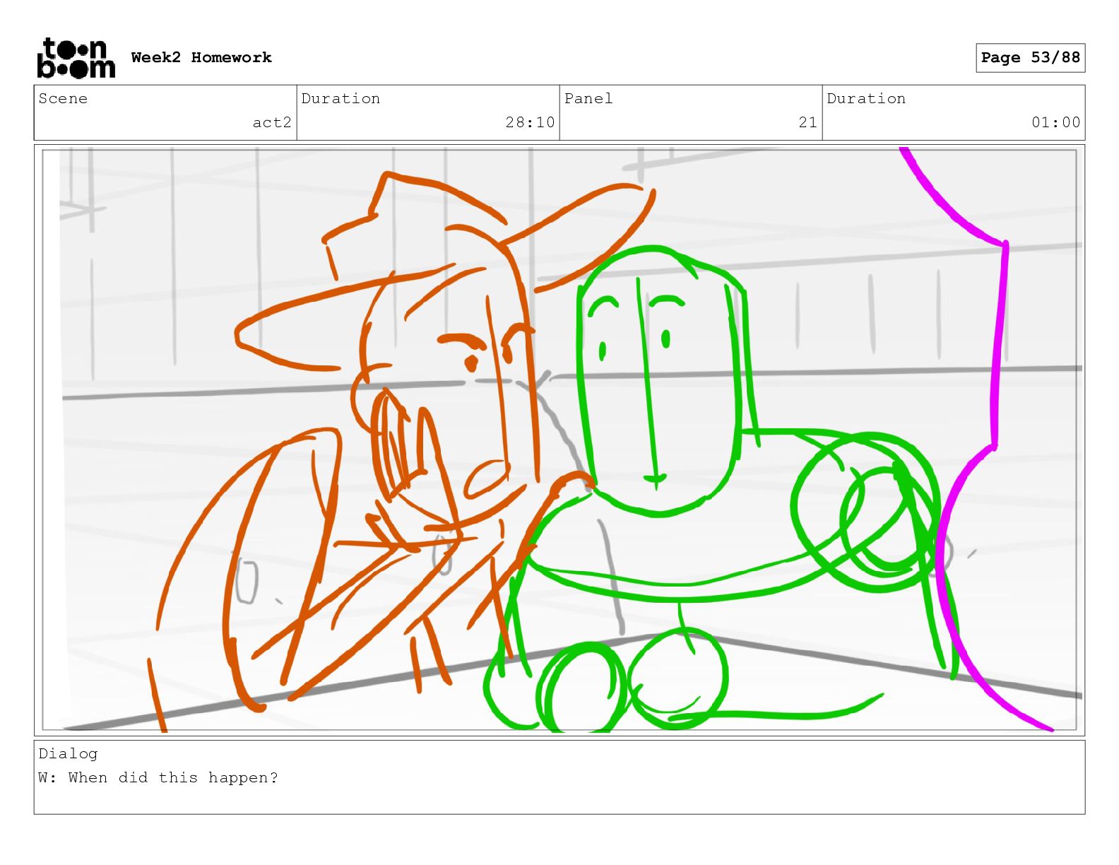 Scene act2 Duration 28:10 Panel 21 Duration 01:00 Dialog W: