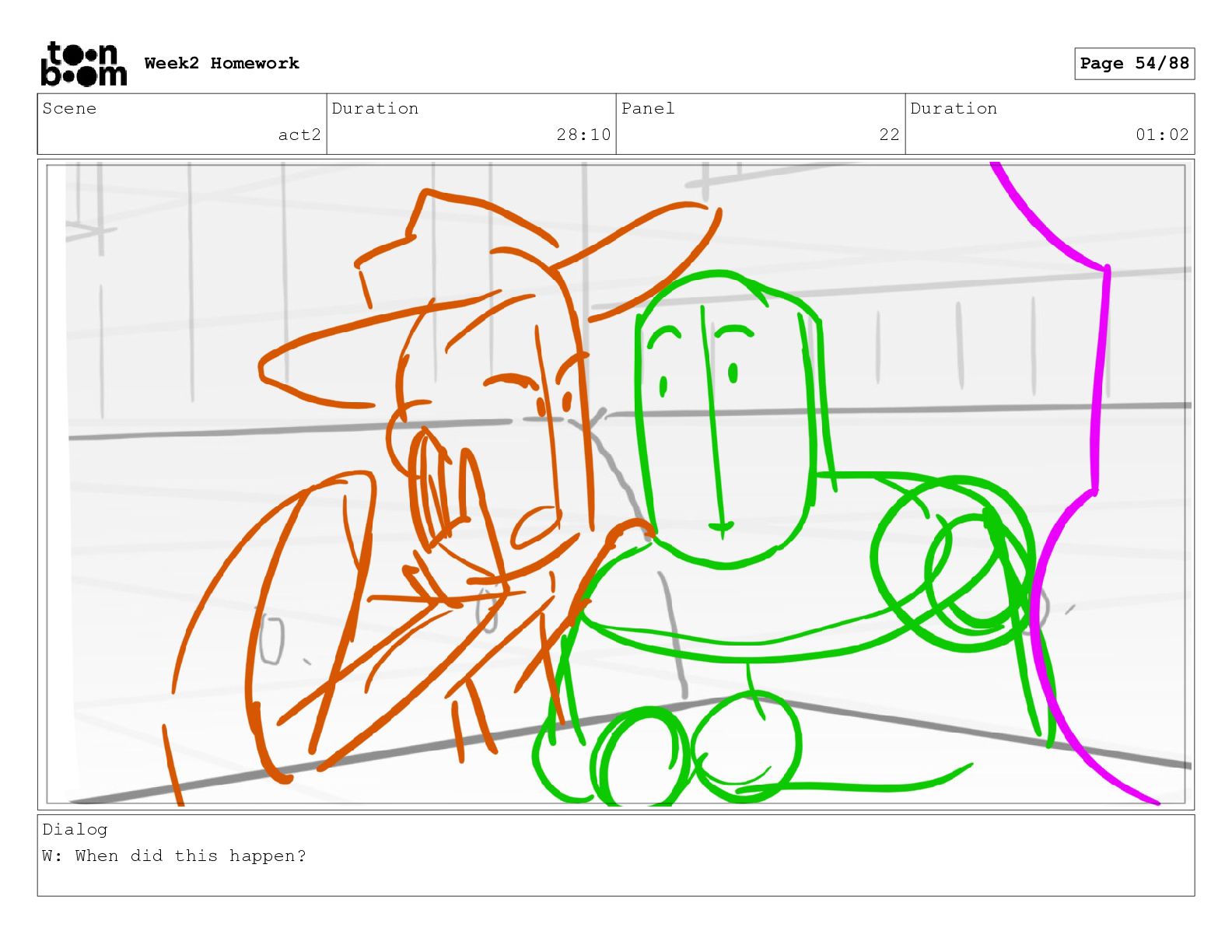 Scene act2 Duration 28:10 Panel 22 Duration 01:02 Dialog W: