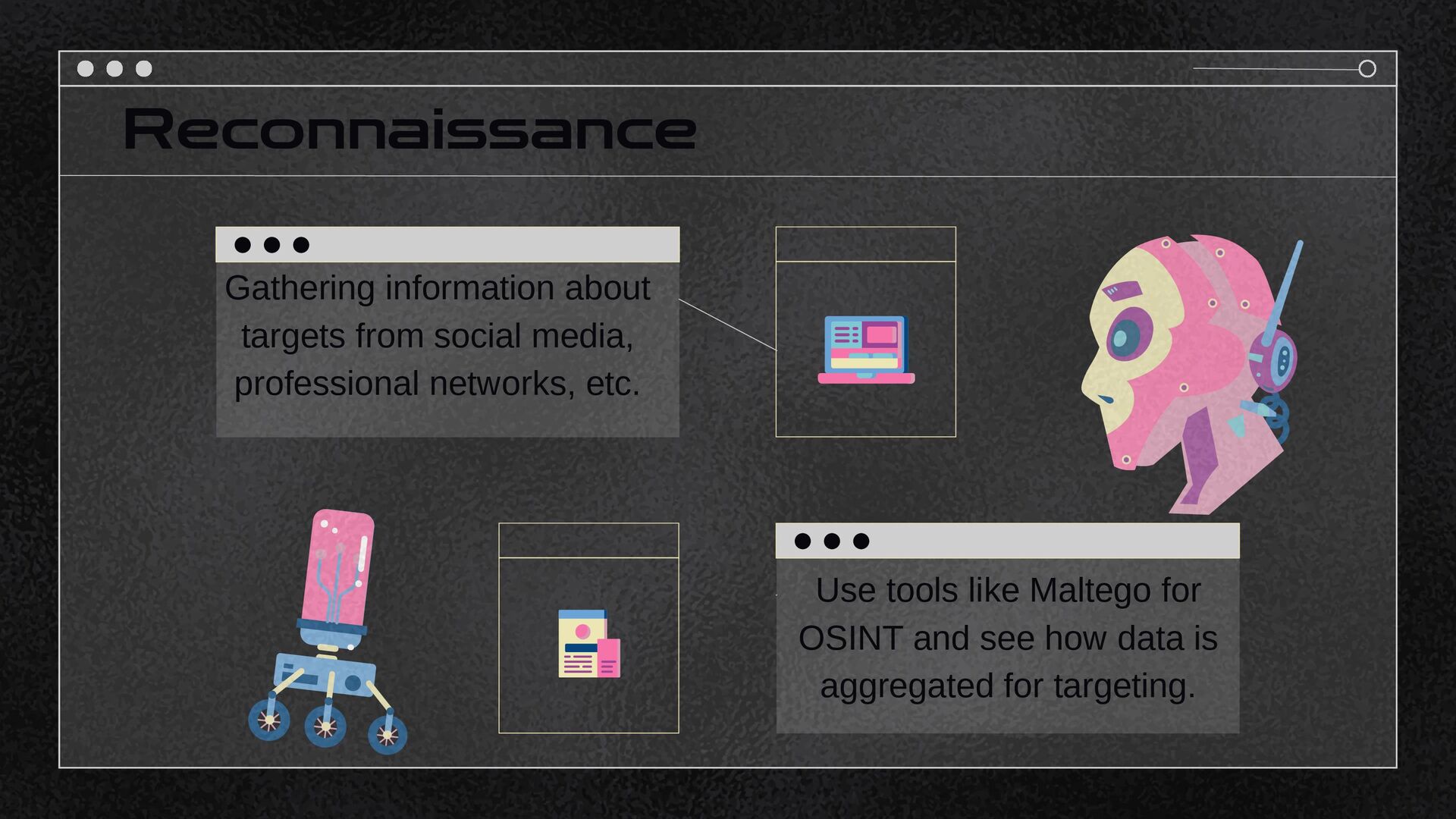 Social Engineering and Phishing: Explores how attackers use OSINT to craft personalized phishing and spear-phishing attacks, including tactics like whaling and behavioral exploitation.