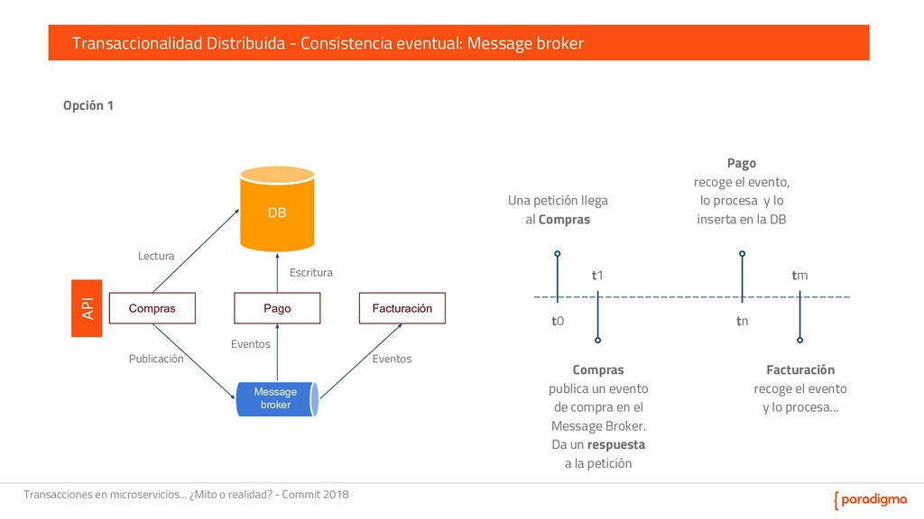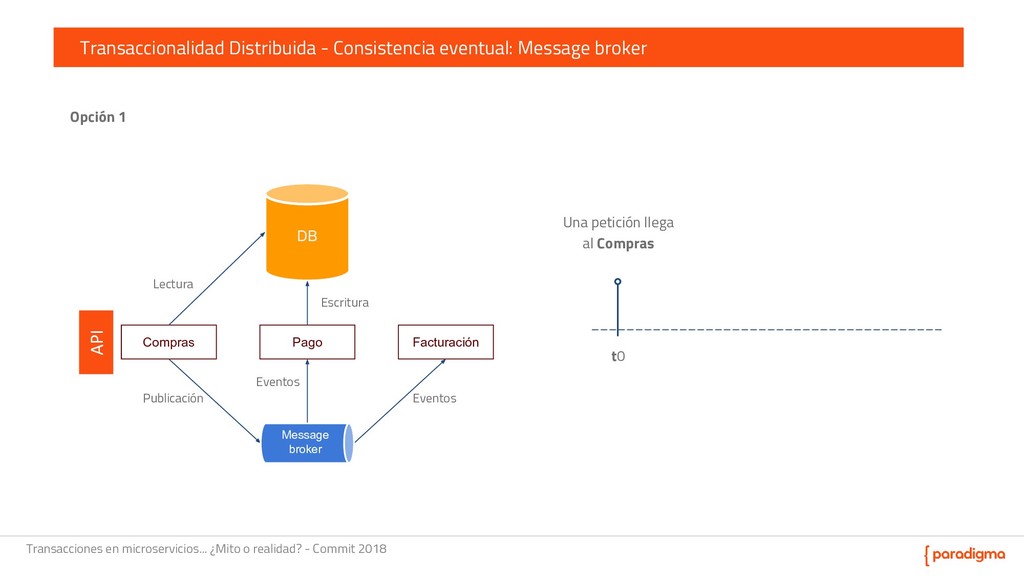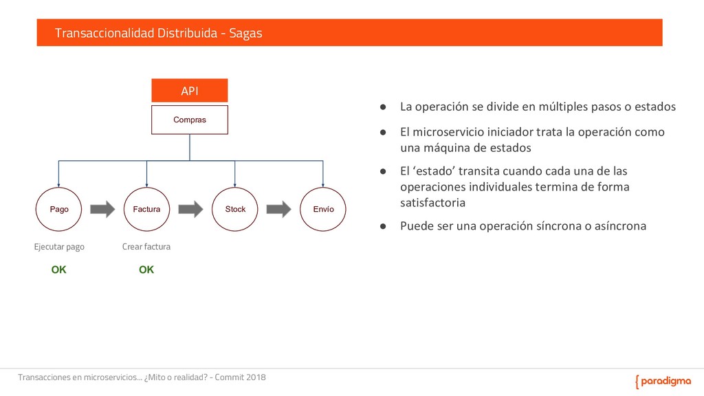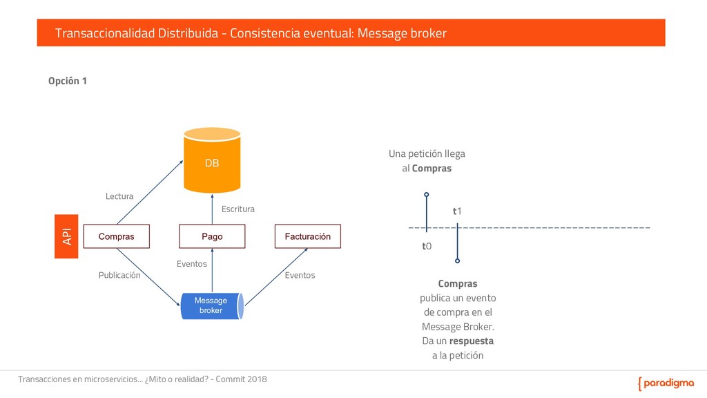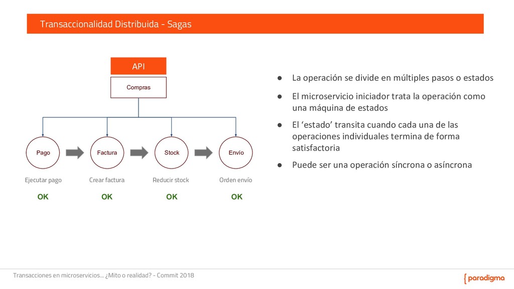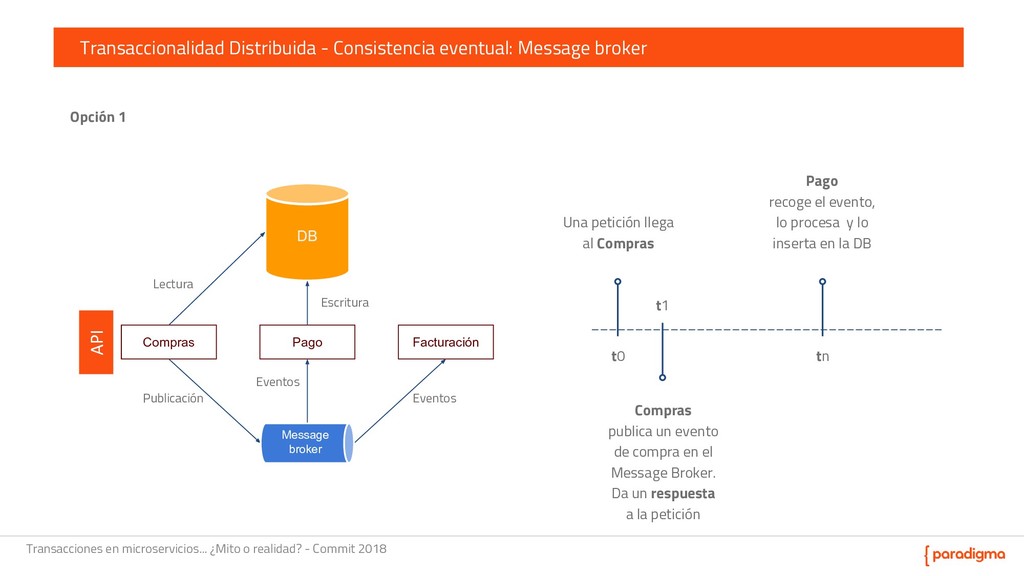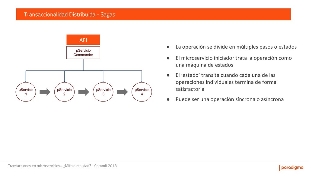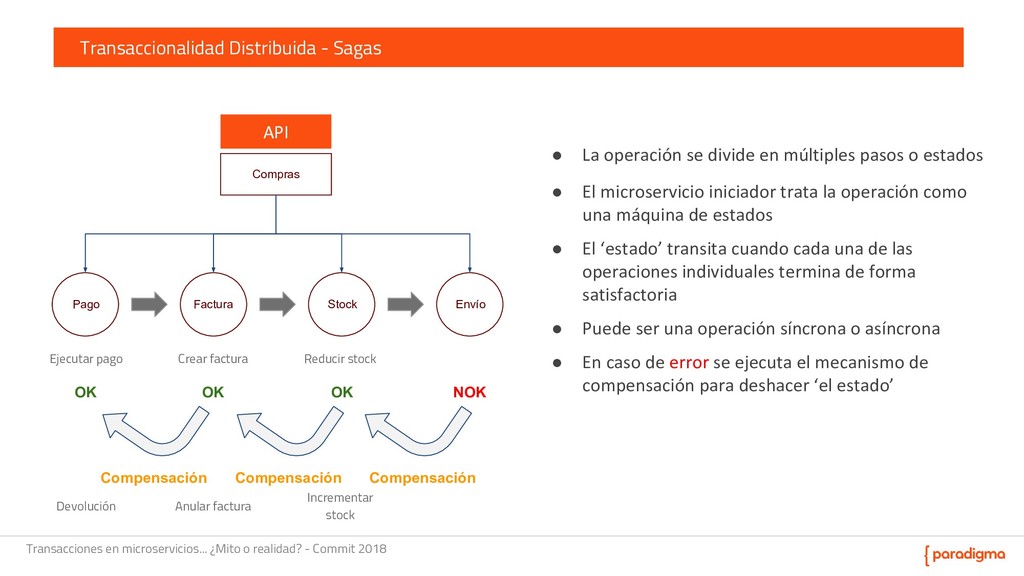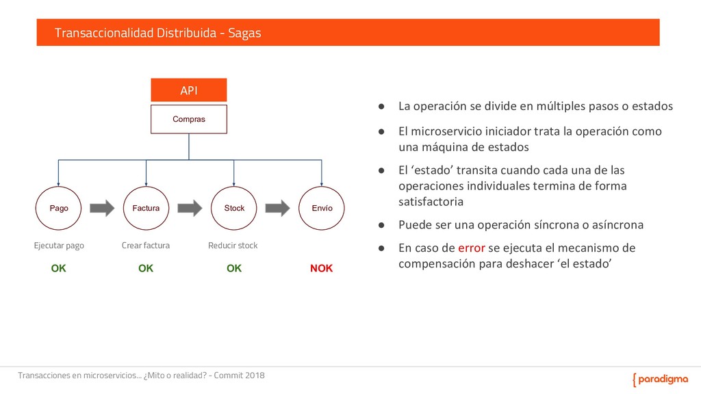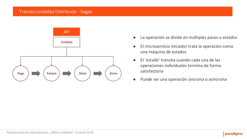 Un problema generalmente resuelto en el mundo monolítico se convierte en un desafío en las *arquitecturas distribuidas*. ¿Cómo podemos atacar esta necesidad transaccional de forma eficiente?