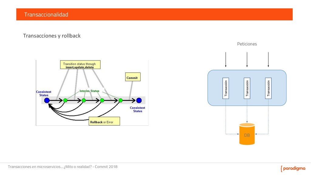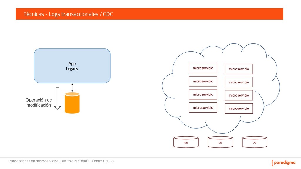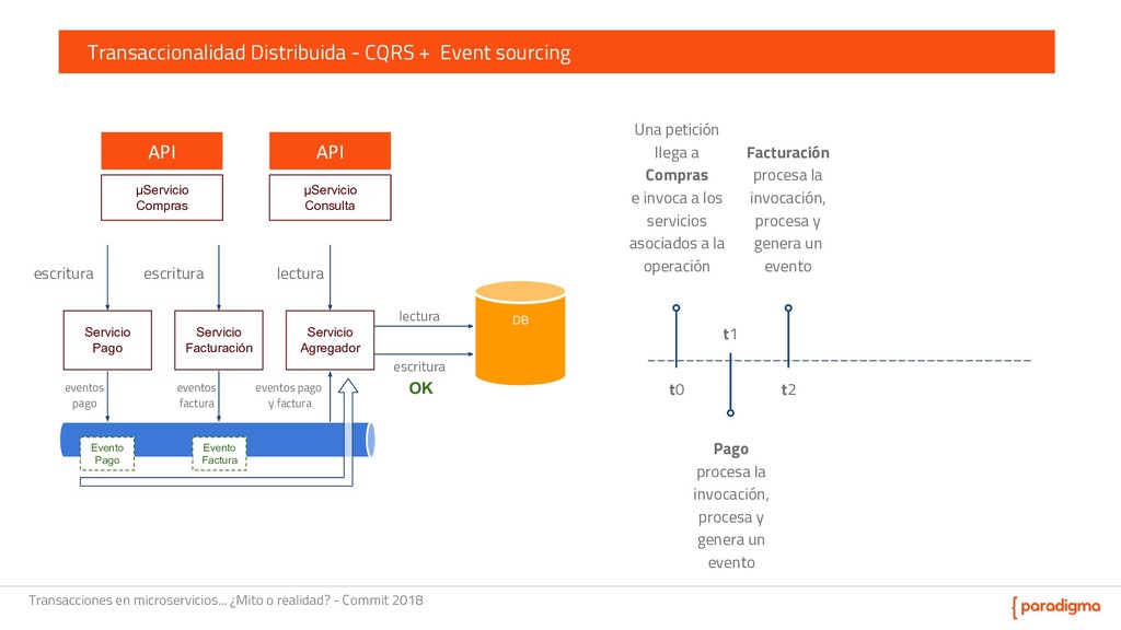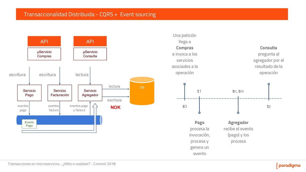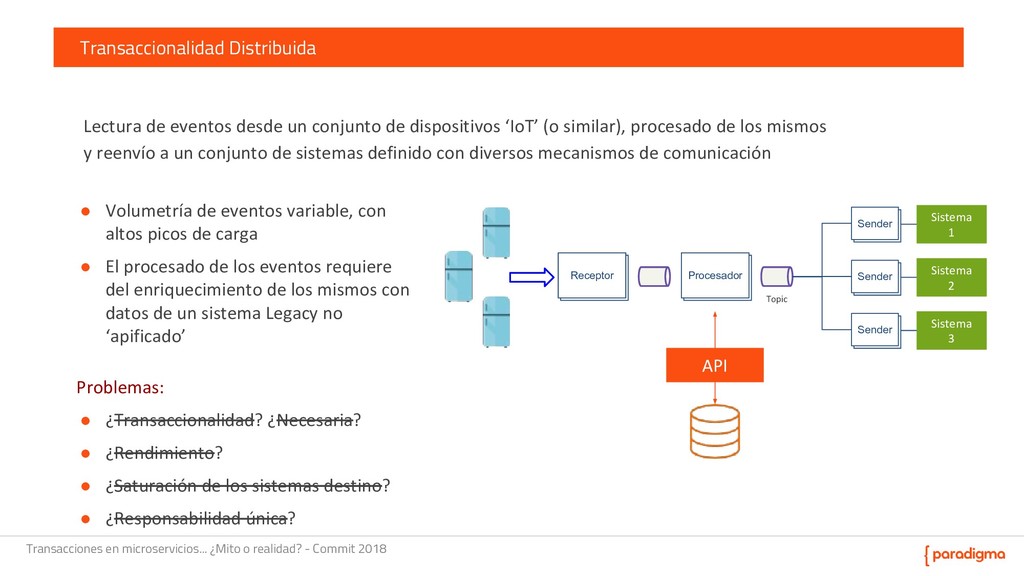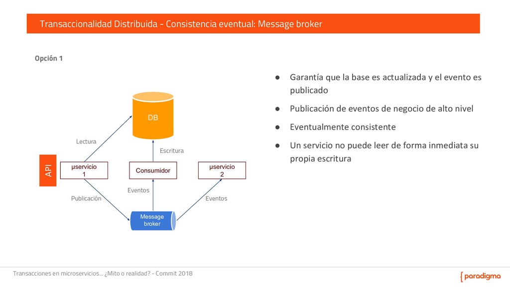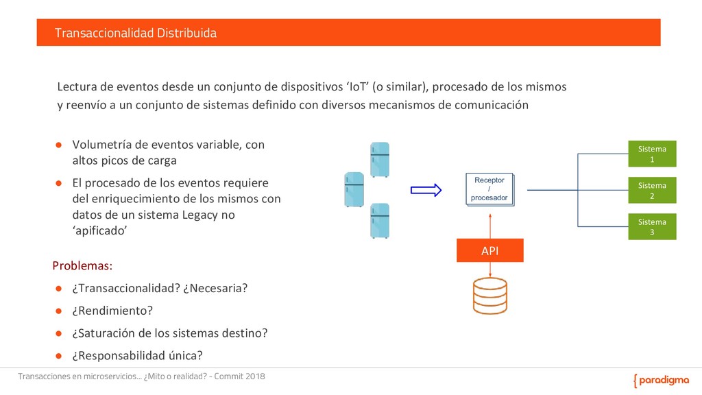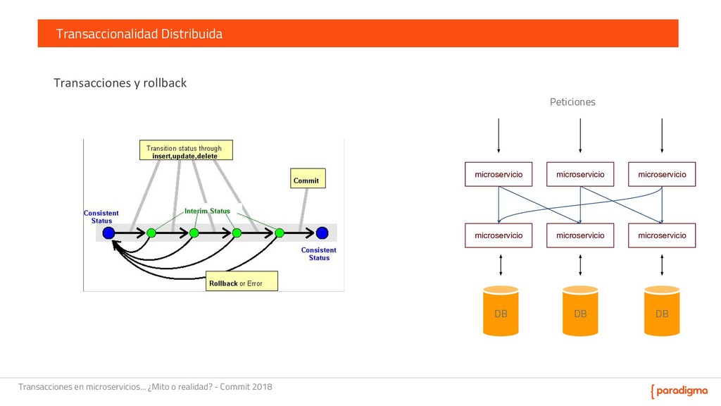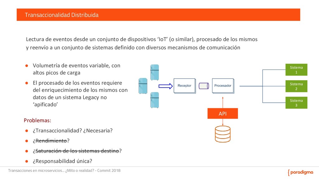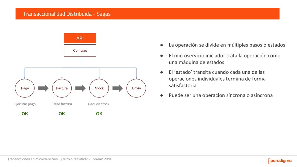 Un problema generalmente resuelto en el mundo monolítico se convierte en un desafío en las *arquitecturas distribuidas*. ¿Cómo podemos atacar esta necesidad transaccional de forma eficiente?