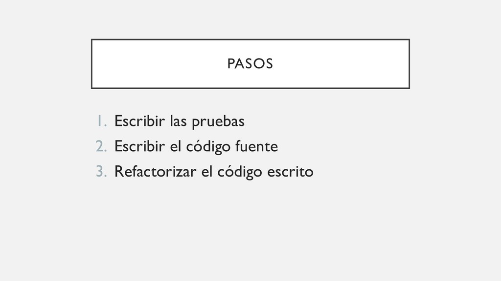 PASOS 1. Escribir las pruebas 2. Escribir el código fuente