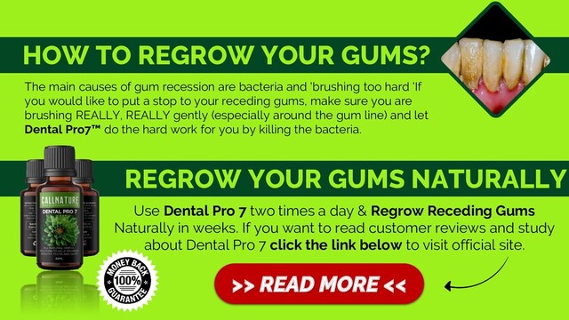 Dental Pro 7 two times a day & Regrow Receding Gums Naturally in weeks. If you want to read customer reviews and study about Dental Pro 7 click the link below to visit official site. The main causes of gum recession are bacteria and 'brushing too hard 'If you would like to put a stop to your receding gums, make sure you are brushing REALLY, REALLY gently (especially around the gum line) and let Dental Pro7™ do the hard work for you by killing the bacteria. REGROW YOUR GUMS NATURALLY
