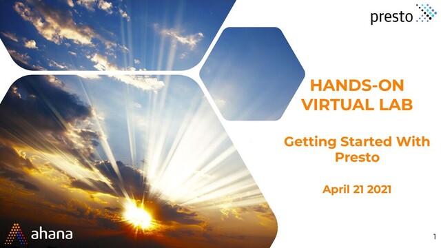 -20 mins) 2) Understand the Technology (15-20 mins) a) What is Presto? b) What is Ahana Cloud? 3) Getting your hands dirty (60 mins) 4) Summary and Close Out (5 mins) 4