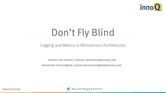 van Lessen | [email protected] Alexander Heusingfeld | [email protected] #javaone #logging #metrics www.innoQ.com