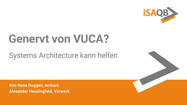 Treiben dich Manager mit Gebrabbel über die VUCA Welt in den Wahnsinn? Ist das Treffen von Entscheidungen in deiner Organisation zu einem langwierigen Prozess geworden? Wir möchten euch ein paar Werkzeuge vorstellen, die wir bei unserer täglichen Arbeit nutzen um Unsicherheiten zu begegnen und Themen zur Entscheidung zu bringen. Wir tauchen dazu ins iSAQB portfolio für Systems Architecture ein und kombinieren es mit Methoden des Complexity Managements und der Organisationsentwicklung um ein gesundes Level an Verlässlichkeit, Sicherheit und Planbarkeit zu erlangen.