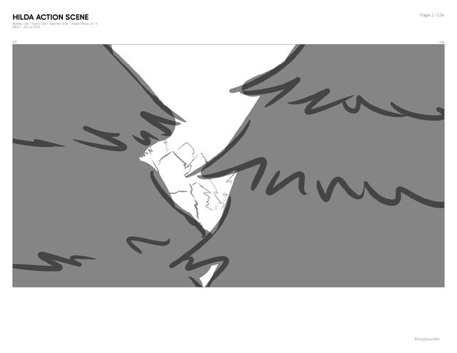 An interpretation of the chase scene in the Netflix show "Hilda" where Hilda and Twig get chased by an upset troll.