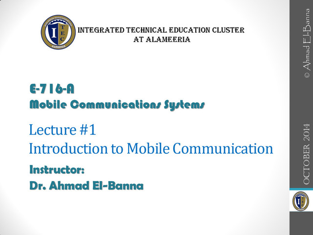 October 2014 E-716-A Mobile Communications Systems Integrated Technical Education Cluster At AlAmeeria © Ahmad El-Banna