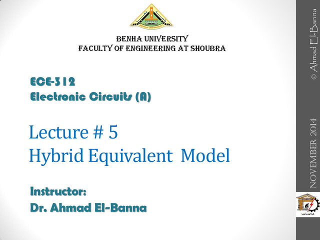 Lecture # 5 Hybrid Equivalent Model Instructor: Dr. Ahmad El-Banna