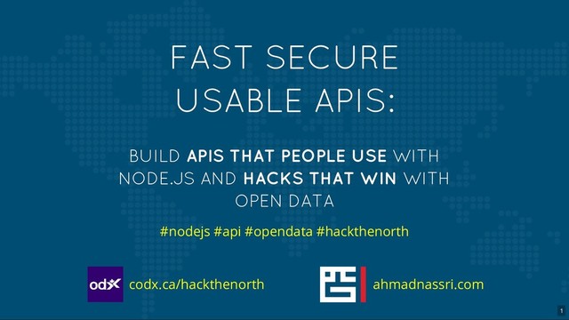APIS THAT PEOPLE USE APIS THAT PEOPLE USE WITH WITH NODE.JS AND NODE.JS AND HACKS THAT WIN HACKS THAT WIN WITH WITH OPEN DATA OPEN DATA #nodejs #api #opendata #hackthenorth codx.ca/hackthenorth ahmadnassri.com 1