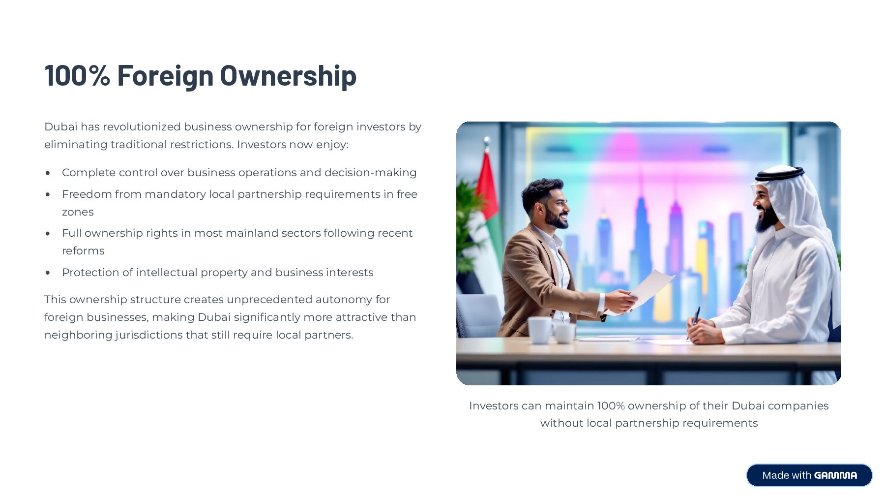 From a prime geographic location to investor-friendly laws, company formation in Dubai offers unmatched value. The city enables fast setup, total ownership, skilled talent access, and low operating costs for global entrepreneurs.