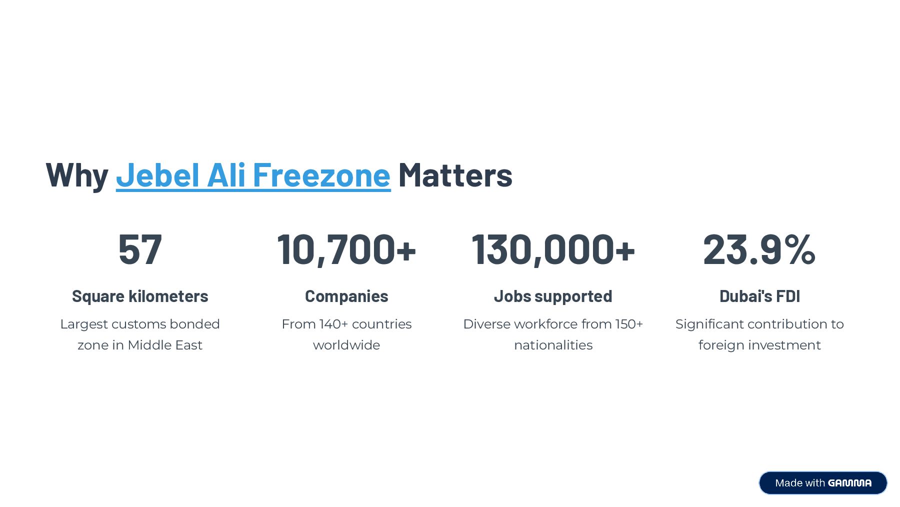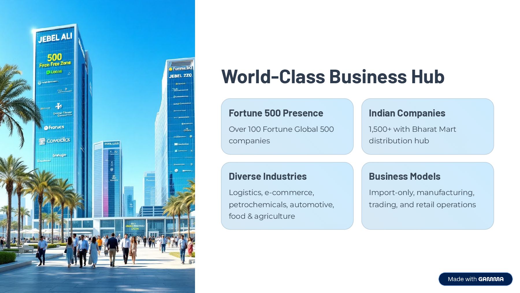 Jebel Ali Freezone plays a vital role in Dubai’s economy, contributing nearly 24% of all foreign direct investment. Located next to the 7th largest container port and connected by highway and airport, it serves as a launchpad for global logistics, e-commerce, and manufacturing. JAFZA supports over 130,000 jobs and hosts 1,500+ Indian businesses, making it the most inclusive and opportunity-rich zone for cross-border business.
