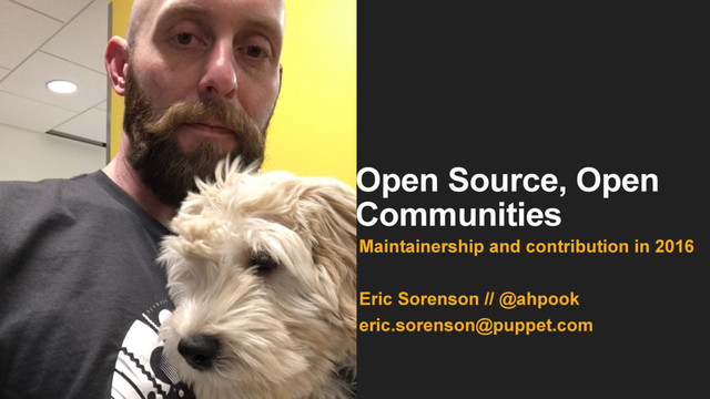 Large open-source projects are changing the way they operate to reflect changes in maintainership and contribution patterns. Improvements in GitHub, test frameworks, and communication tools like chatops have made parts of OSS easier... and others way harder. In this talk, I'll walk through the evolution of our contribution and community processes on Puppet and its related projects over the last several years, to examine our successes -- and a few notable failures. I'll close with some ideas and suggestions, both to help maintainers improve the quality and quantity of their contributions, and to help both new and seasoned contributors have a great experience working on open-source projects.