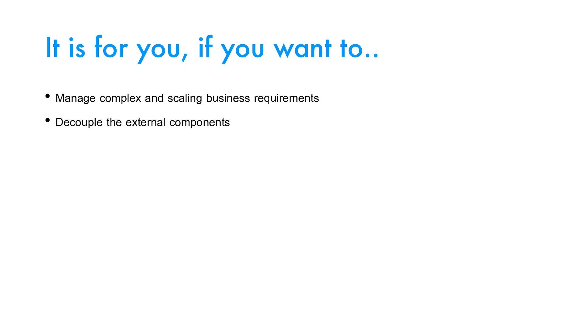 complex and scaling business requirements • Decouple the external components • Share business logic across platforms