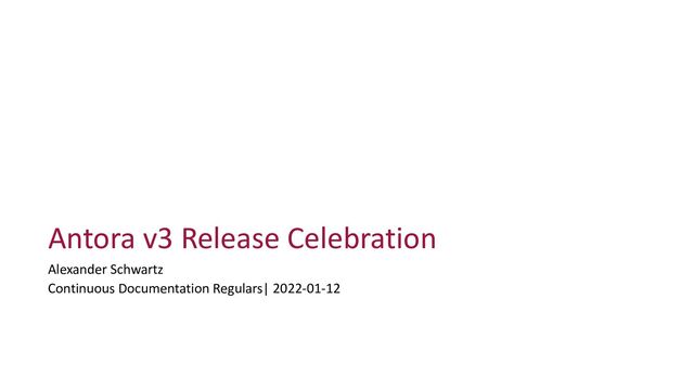 Antora, the static site generator for AsciiDoc content, has been released in version 3! This January Meetup will celebrate this release and its features.