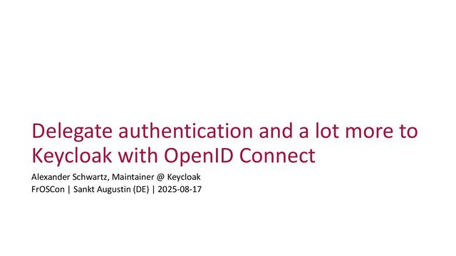 Join this talk to see how you can delegate all the tasks around authentication to Keycloak. We will start simple and enable more and more features in our demo to show the functionality and flexibility of Keycloak. We will also look at features of the latest release and the road map ahead.