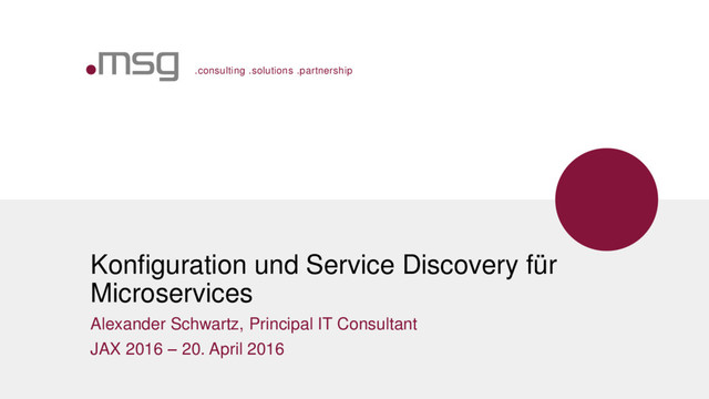 Anwendungen benötigen Konfigurationsdaten mit unterschiedlichen Informationen, z. B. zu den Adressen der Nachbarsysteme und zu fachlichen Parametern. In einer Microservices-Umgebung ist Automatisierung der Schlüssel zu einem zuverlässigen und effizienten Betrieb. Eine übergreifende zentrale Konfiguration ist der erste Schritt. Im zweiten Schritt müssen Konsumenten automatisch die von ihnen benötigten Services finden, wenn diese skaliert oder auf anderen Knoten neu gestartet wurden. Dieser Vortrag gibt eine Einführung in zentrale Konfiguration und Service Discovery mit praktischen Beispielen rund um Netflix Archaius, HashiCorp Consul, CoreOS etcd und Netflix Eureka.