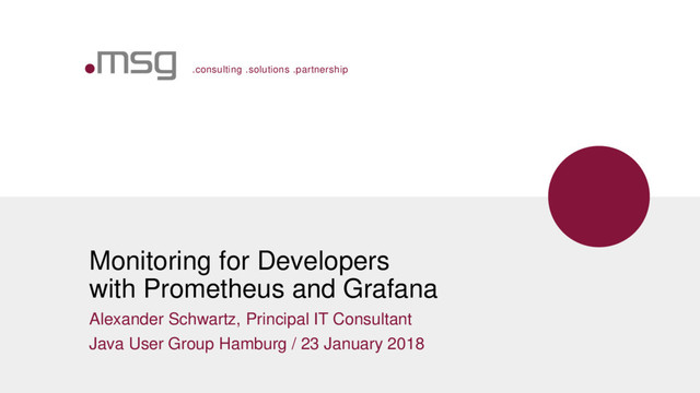 This talk takes a developer's perspective and shows how to get started with Prometheus as a monitoring platform and how it differs from other monitoring concepts.