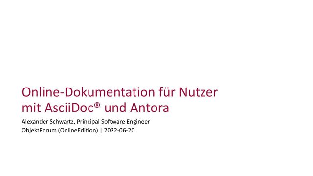 Dieser Vortrag stellt die Grundlagen eines Antora-Setups vor und zeigt alle Schritte von einer Dokumentationsänderung in der IDE bis hin zur aktualisierten Dokumentations-Website mit Continuous Integration und Delivery.