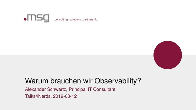 Dieser Vortrag stellt die vier Bereiche vor, die zur Beobachtbarkeit (engl. Observability) dazugehören: Status-Informationen, Logs, Metriken und Traces. Technologie-Beispiele zu Spring Boot Actuator, Log4j, Micrometer und Prometheus zeigen, wie die Konzepte praktisch umgesetzt werden können.