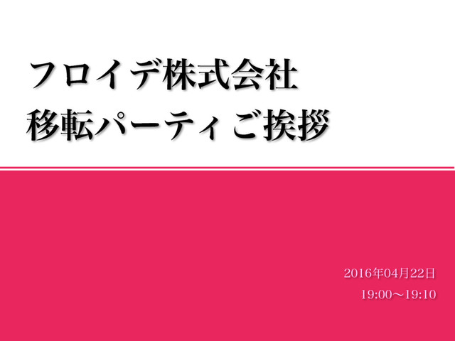 2016年、フロイデは天神に本社を移転しました。 その際のご挨拶に使用した資料です。 また、フロイデはゲームの受託開発に着手し、かつ、現在の月額性ラボ型IT支援サービスを下記のように整理し、より細やかな対応を行うようにしました。