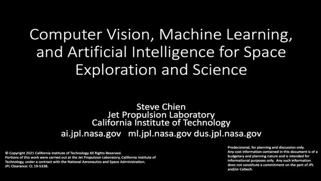 Dr Steve Chien, Senior Research Scientist at JPL Laboratory, outlines the uses & benefits of Computer Vision, Machine Learning & AI.