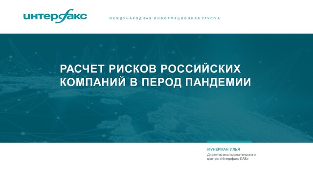 Н А Я И Н Ф О Р М А Ц И О Н Н А Я Г Р У П П А РАСЧЕТ РИСКОВ РОССИЙСКИХ КОМПАНИЙ В ПЕРОД ПАНДЕМИИ МУНЕРМАН ИЛЬЯ Директор исследовательского центра «Интерфакс ЛАБ»