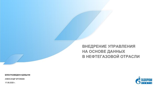 преодолеваем СЛОЖНОСТЬ ЭКОНОМИЧЕСКОГО ОБОСНОВАНИЯ НЕУСТОЯВШИЕСЯ ПРОЦЕССЫ И МЕТОДОЛОГИЯ УПРАВЛЕНИЯ ДАННЫМИ § Низкий приоритет проектов по управлению данными в портфеле проектов в портфеле § Финансирование по остаточному принципу § Фрагментарная работа с данными. Где-то BI, где-то хранилище, где-то модель данных и т.д. § Несколько раз переделываем одни и те же работы § Сложности консолидации результатов разных проектов на уровне компании § Работа с данными необходимыми для бизнес инициатив § Разработка и утверждение методики расчета экономического эффекта для data-проектов § Использование международных стандартов (DMBoK, PPDM, OSDU) § Доработка процессов от практики § Постепенное масштабирование § Наставничество со стороны владельцев процессов § Владельцы процессов сами работают в проектах § Доработка производственных ИТ и цифровых процессов Как проявлялось Как преодолеваем