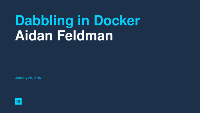 Dabbling in Docker Aidan Feldman January 25, 2016