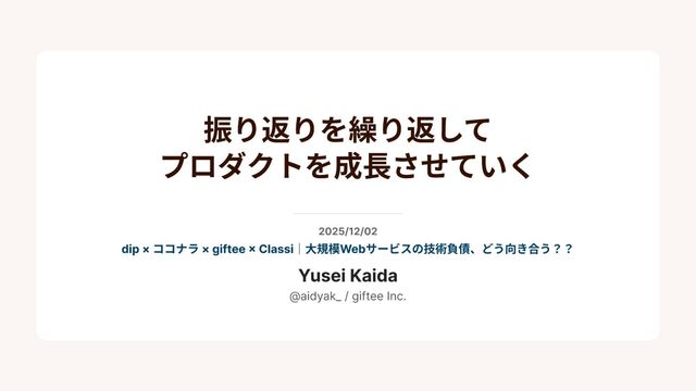2025年12月2日 『dip×ココナラ×giftee×Classi|大規模Webサービスの技術負債、どう向き合う??』