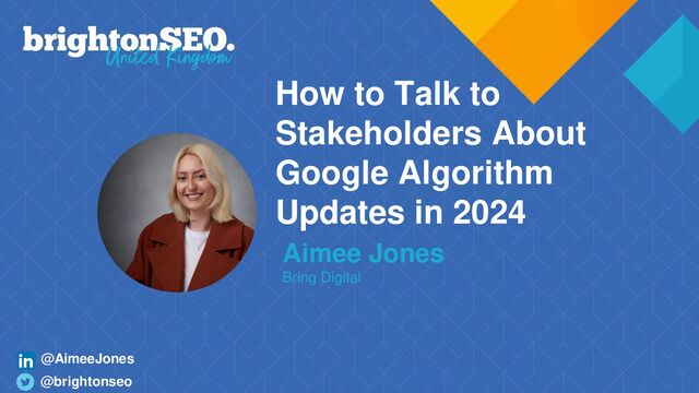How to keep on top of algorithm updates • How to prepare & respond to algorithm updates • How to communicate these changes to clients & stakeholders @AimeeJones @brightonseo