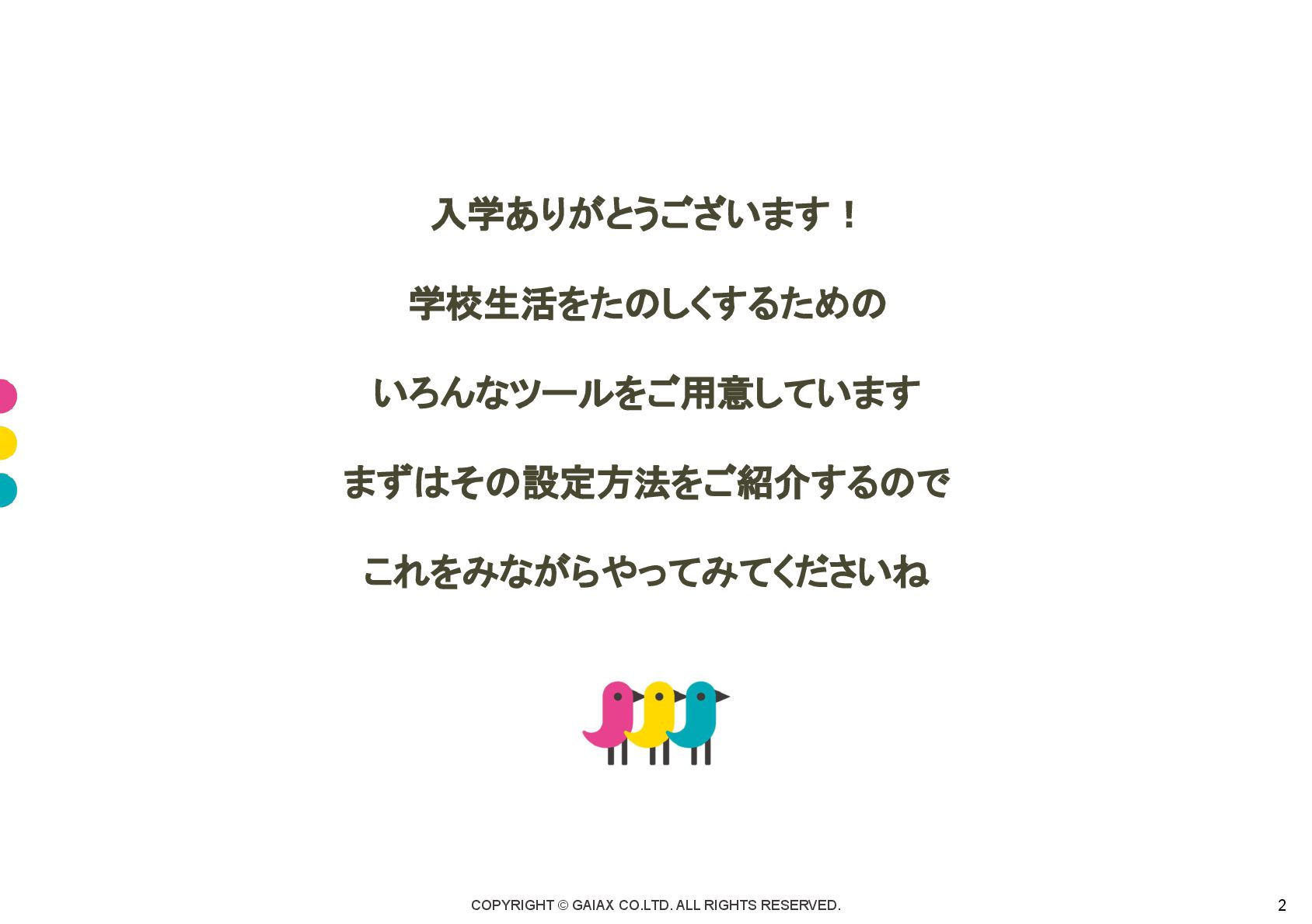 COPYRIGHT © GAIAX CO.LTD. ALL RIGHTS RESERVED. 2 入学ありがとうございます! 学校生活をたのしくするための
