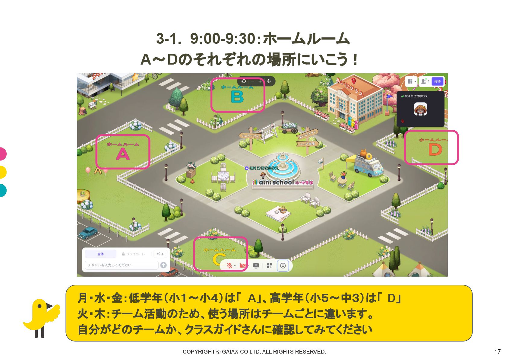 COPYRIGHT © GAIAX CO.LTD. ALL RIGHTS RESERVED. 17 3-1. 9:00-9:30:ホームルーム