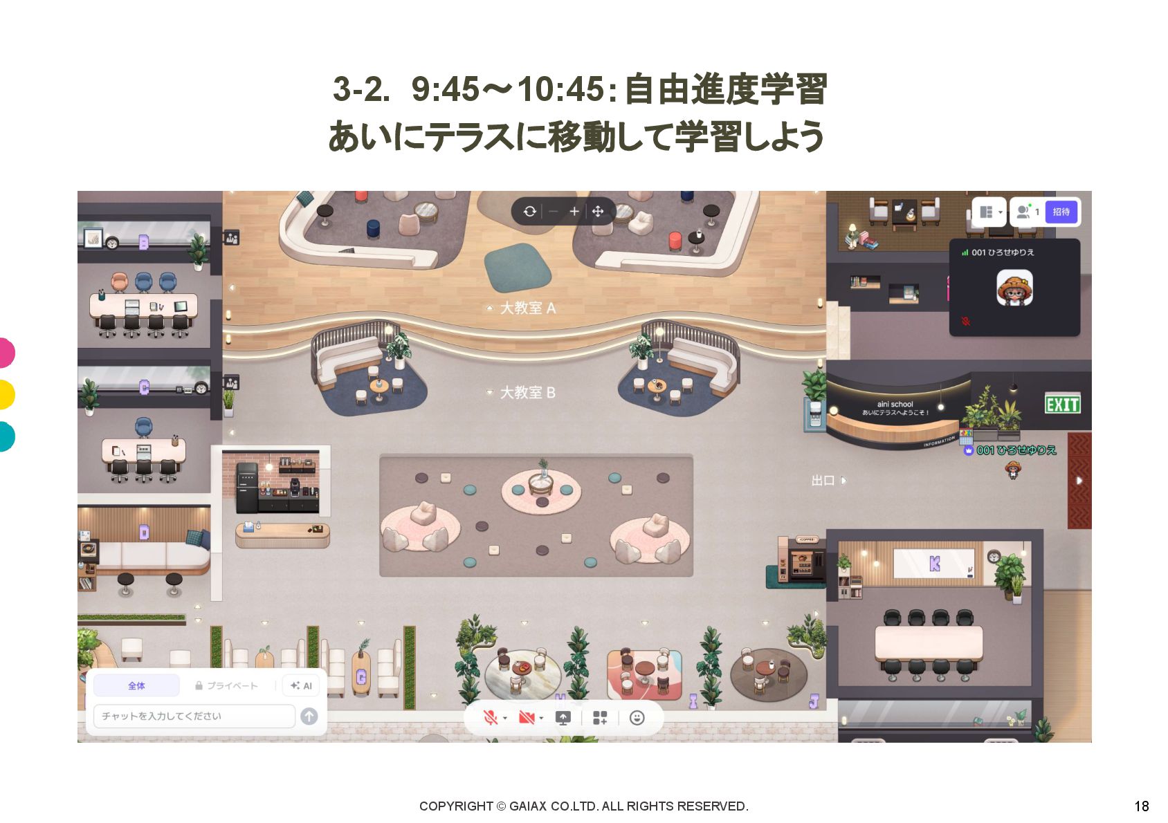 COPYRIGHT © GAIAX CO.LTD. ALL RIGHTS RESERVED. 18 3-2. 9:45〜10:45:自由進度学習