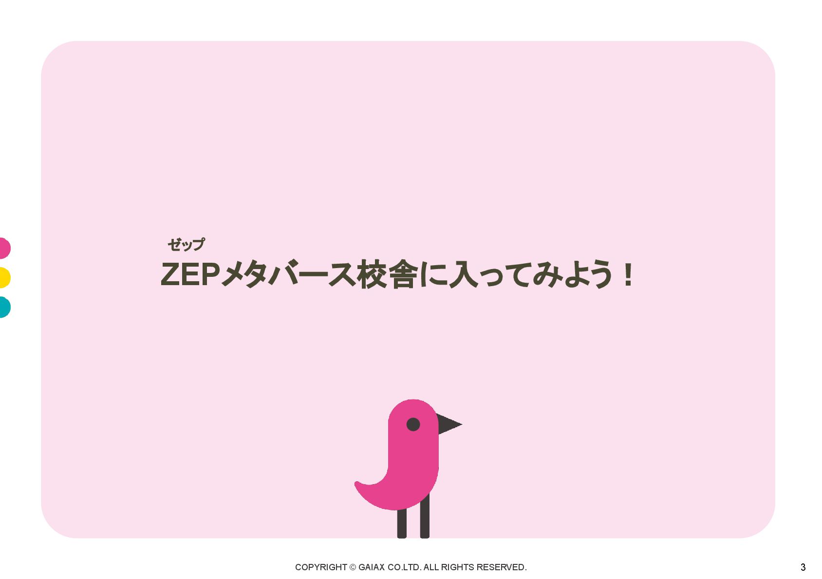 COPYRIGHT © GAIAX CO.LTD. ALL RIGHTS RESERVED. 3 ZEPメタバース校舎に入ってみよう! ゼップ