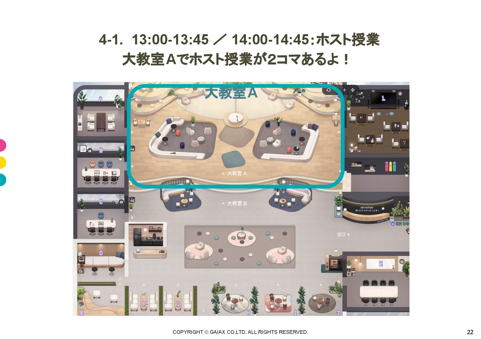 COPYRIGHT © GAIAX CO.LTD. ALL RIGHTS RESERVED. 21 午後はホストの授業に 参加しよう!