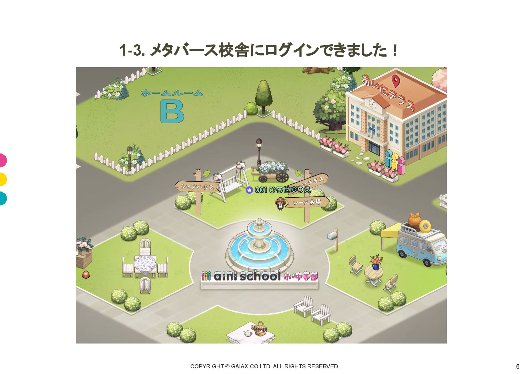 COPYRIGHT © GAIAX CO.LTD. ALL RIGHTS RESERVED. 6 1-3. メタバース校舎にログインできました!