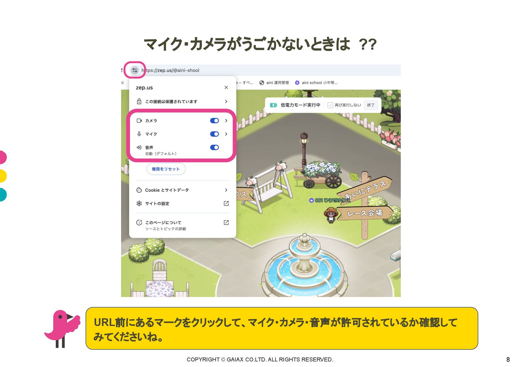 COPYRIGHT © GAIAX CO.LTD. ALL RIGHTS RESERVED. 8 マイク・カメラがうごかないときは ??