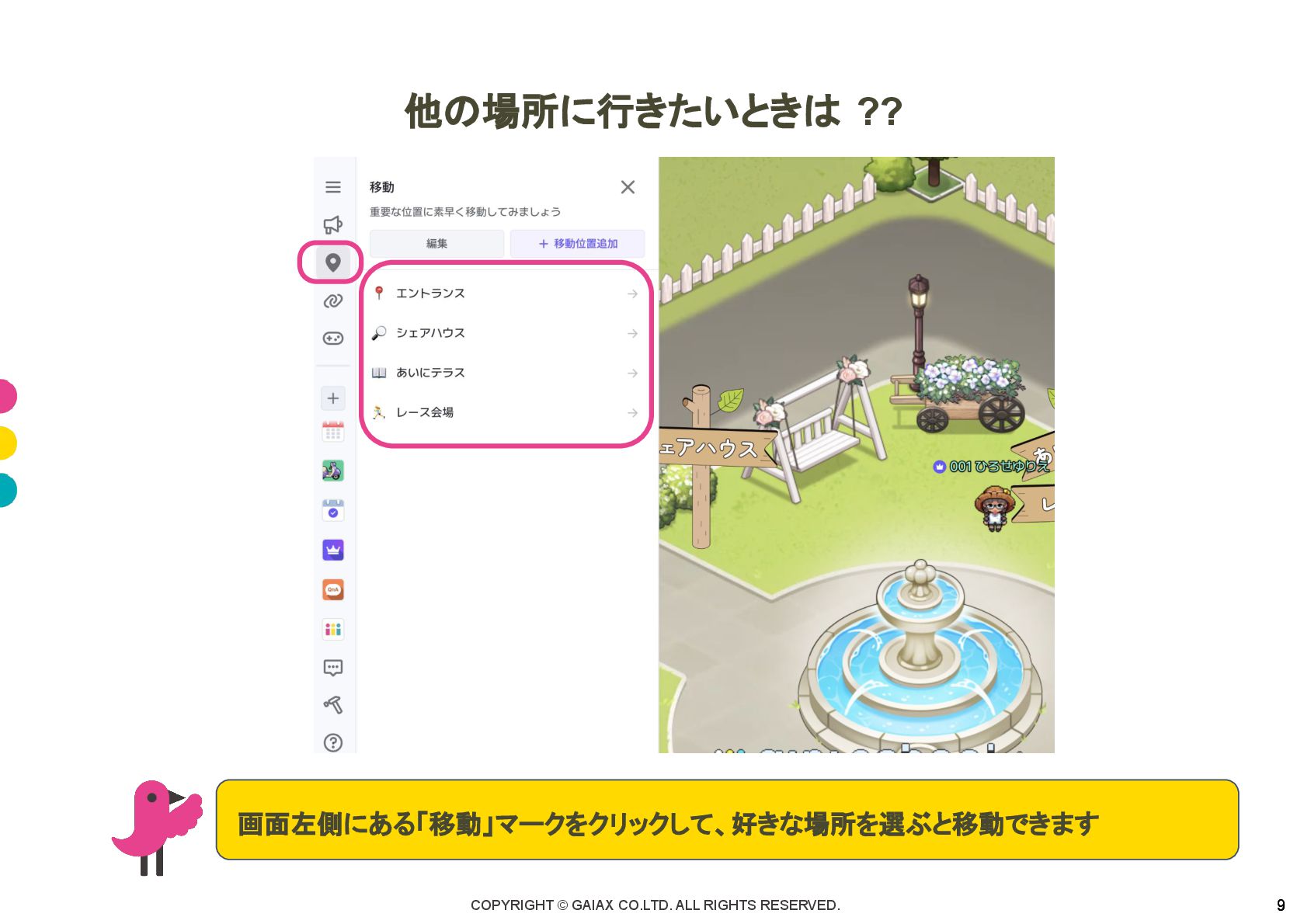 COPYRIGHT © GAIAX CO.LTD. ALL RIGHTS RESERVED. 9 9 他の場所に行きたいときは