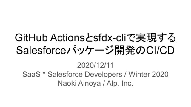 GitHub Actionsとsfdx-cliで実現するSalesforceパッケージ開発のCI/CD SaaS * Salesforce Developers / Winter 2020 2020/12/11 https://alp.connpass.com/event/194735/