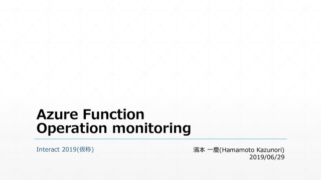 Azure Functionの運用監視についてやったことをご紹介 2019/06/29 Interact 2019 https://interact.connpass.com/event/91059/