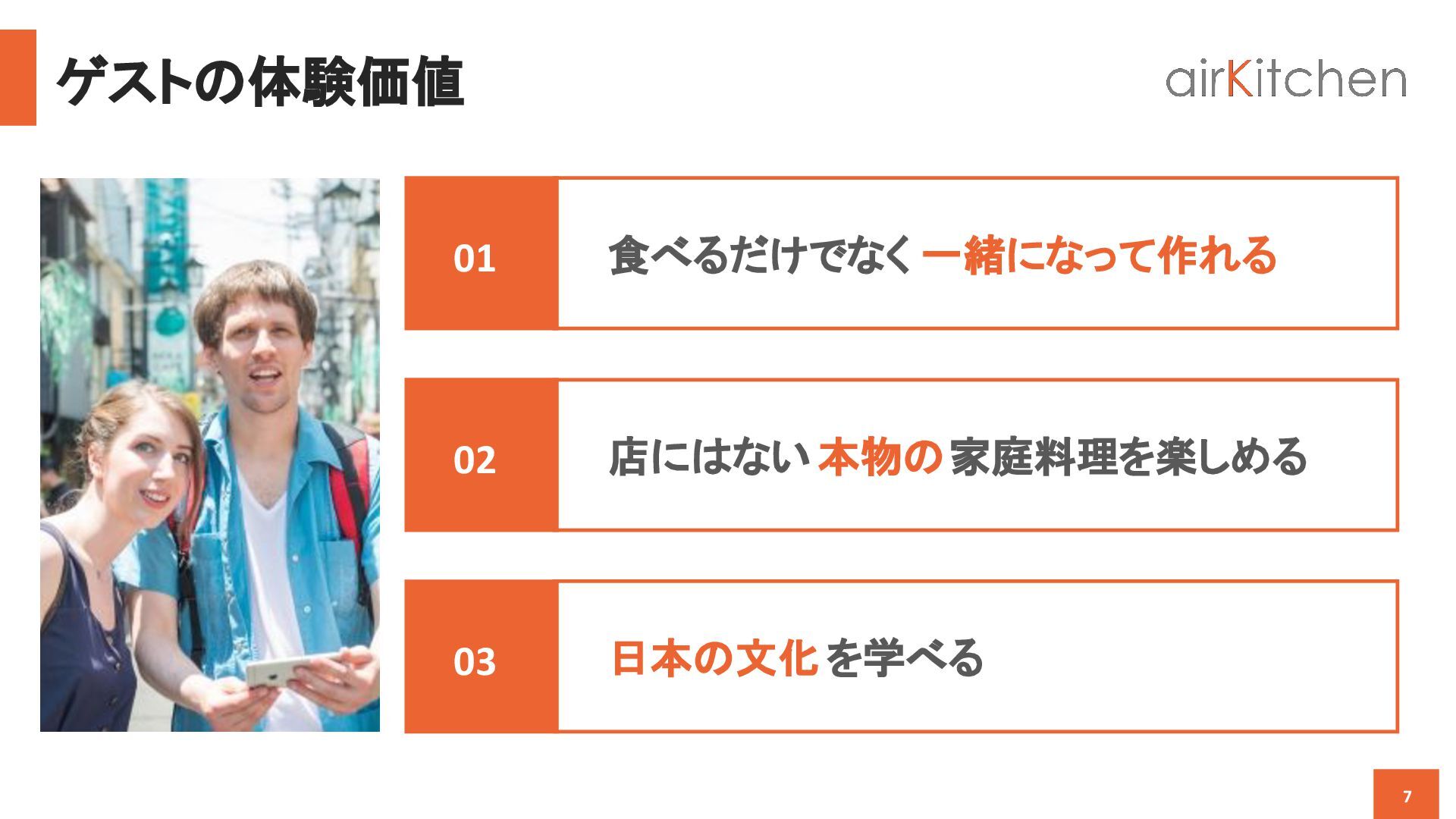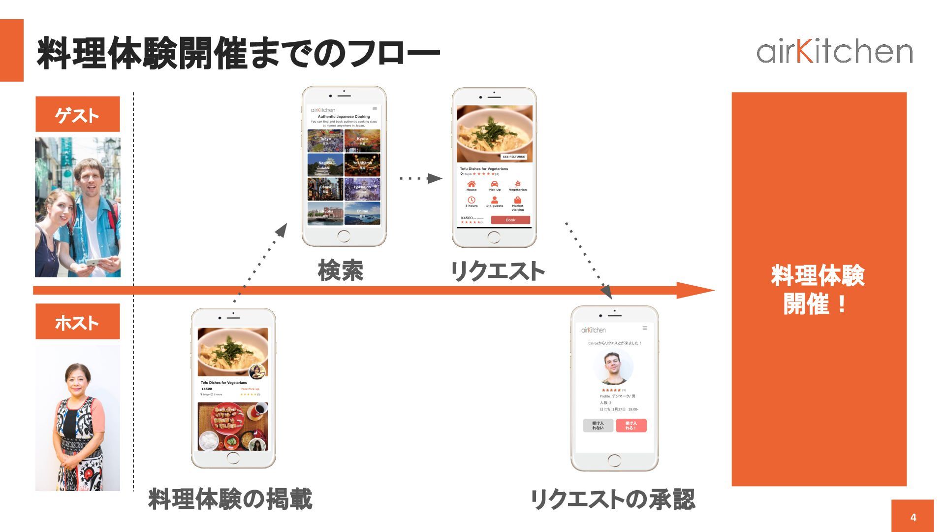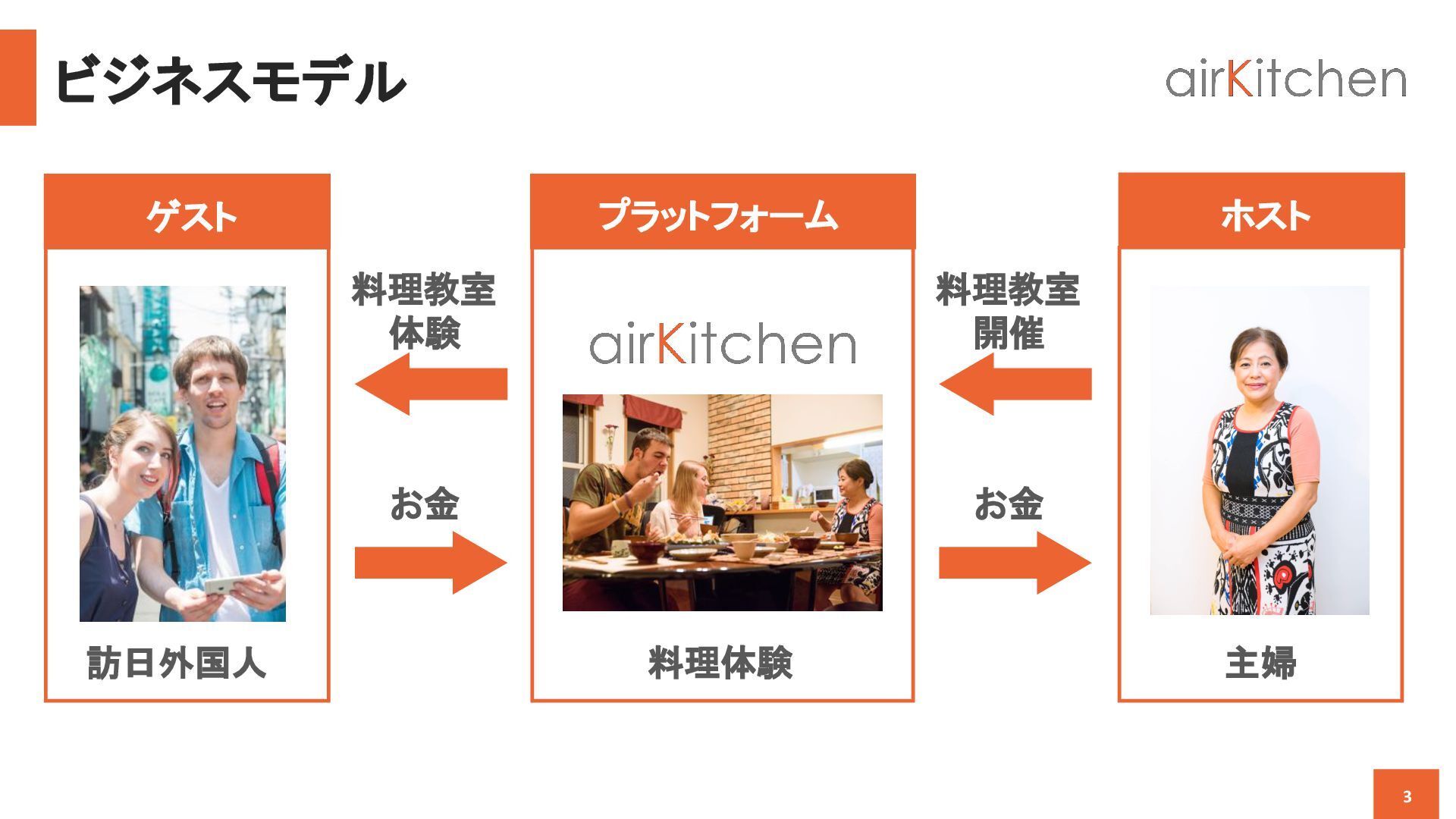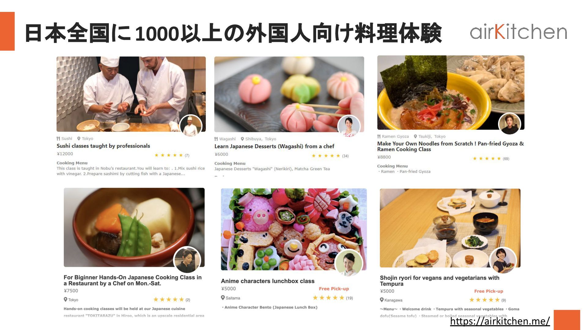 travelers from all around the world to book an authentic cooking class by Japanese hosts in their homes. Learn to cook homemade Japanese food and enjoy the warmth of eating around a dinner table with Japanese locals. airKitchen 旅行会社向け概要資料