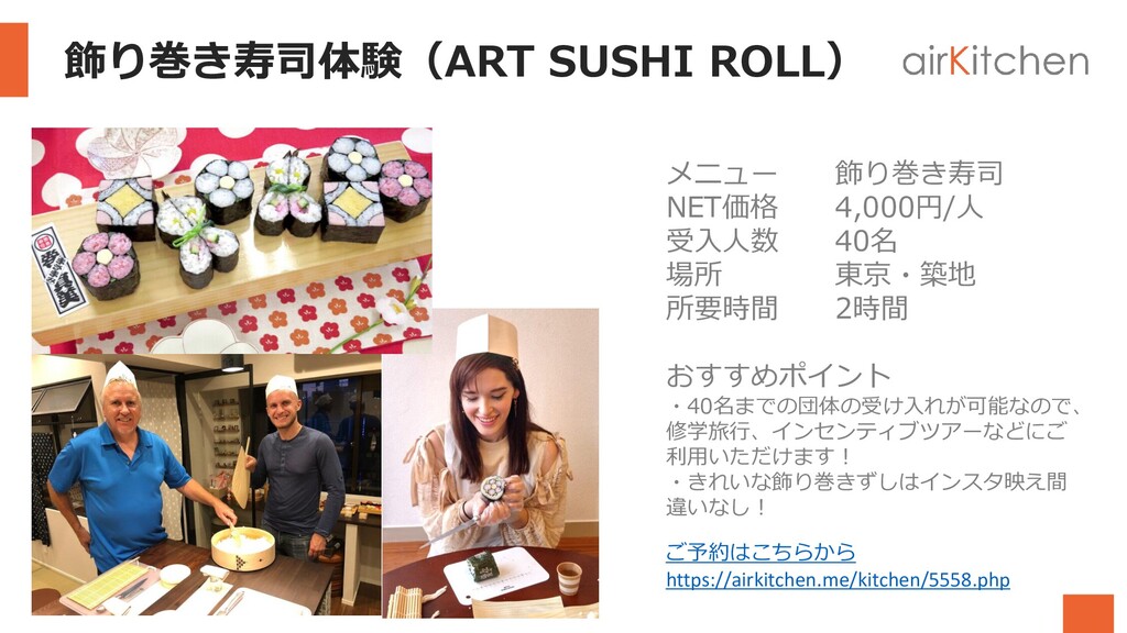 日本食体験は「日本食」を通して、文化体験ができる新しいアクティビティとして、欧米豪の旅行客やリピーターのお客様に中心に人気を集めております! また食を中心とした観光「フードツーリズム」は今大注目の観光スタイルです。