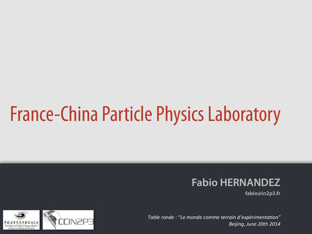 I am • Computing science background • Senior research engineer, affiliated to France’s National Institute of Nuclear Physics and Particle Physics (IN2P3/ CNRS) • Working in the eld of computing and big data processing for high-energy physics for more than 20 years • Based in Beijing since 2010 at the Institute of High Energy Physics (IHEP/CAS) initially as international expert of French Ministry of Foreign Affairs afterwards as a senior visiting scientist, sponsored by both CAS and CNRS 2