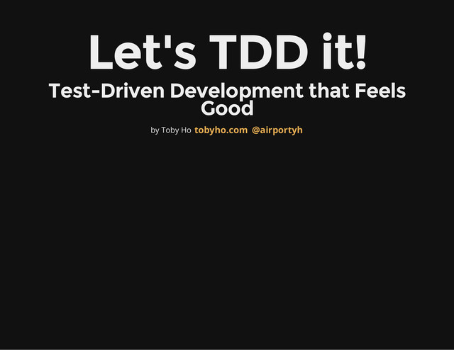 A lot of people view Test-Driven-Development (TDD) as a rigorous practice that takes a lot of self displine. I will dispel this myth by showing how TDD can be fun, as well as give tips and tricks on how to keep your TDD experience fast, flowing, and enjoyable. I will also do a live coding session showing the way I do TDD.