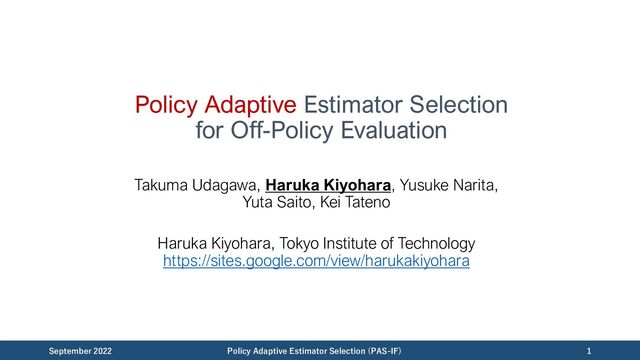 Tree for Learning with Partial Labels.” KDD, 2009. [Precup+,00] Doina Precup, Richard S. Sutton, and Satinder Singh. “Eligibility Traces for Off-Policy Policy Evaluation.” ICML, 2000. https://scholarworks.umass.edu/cgi/viewcontent.cgi?article=1079&context=cs_facult y_pubs [Strehl+,10] Alex Strehl, John Langford, Sham Kakade, and Lihong Li. “Learning from Logged Implicit Exploration Data.” NeurIPS, 2010. https://arxiv.org/abs/1003.0120 [Dudík+,14] Miroslav Dudík, Dumitru Erhan, John Langford, and Lihong Li. “Doubly Robust Policy Evaluation and Optimization.” ICML, 2011. https://arxiv.org/abs/1503.02834 September 2022 Policy Adaptive Estimator Selection (PAS-IF) 56