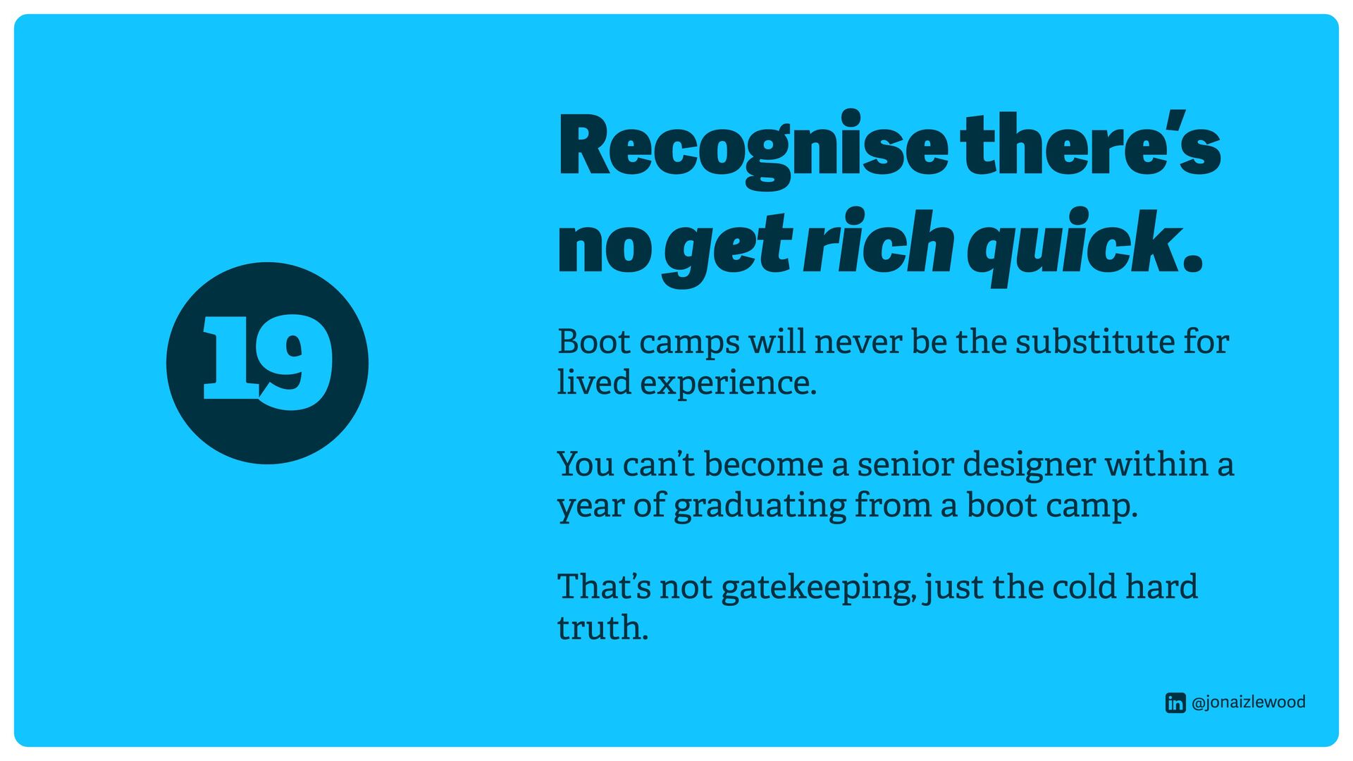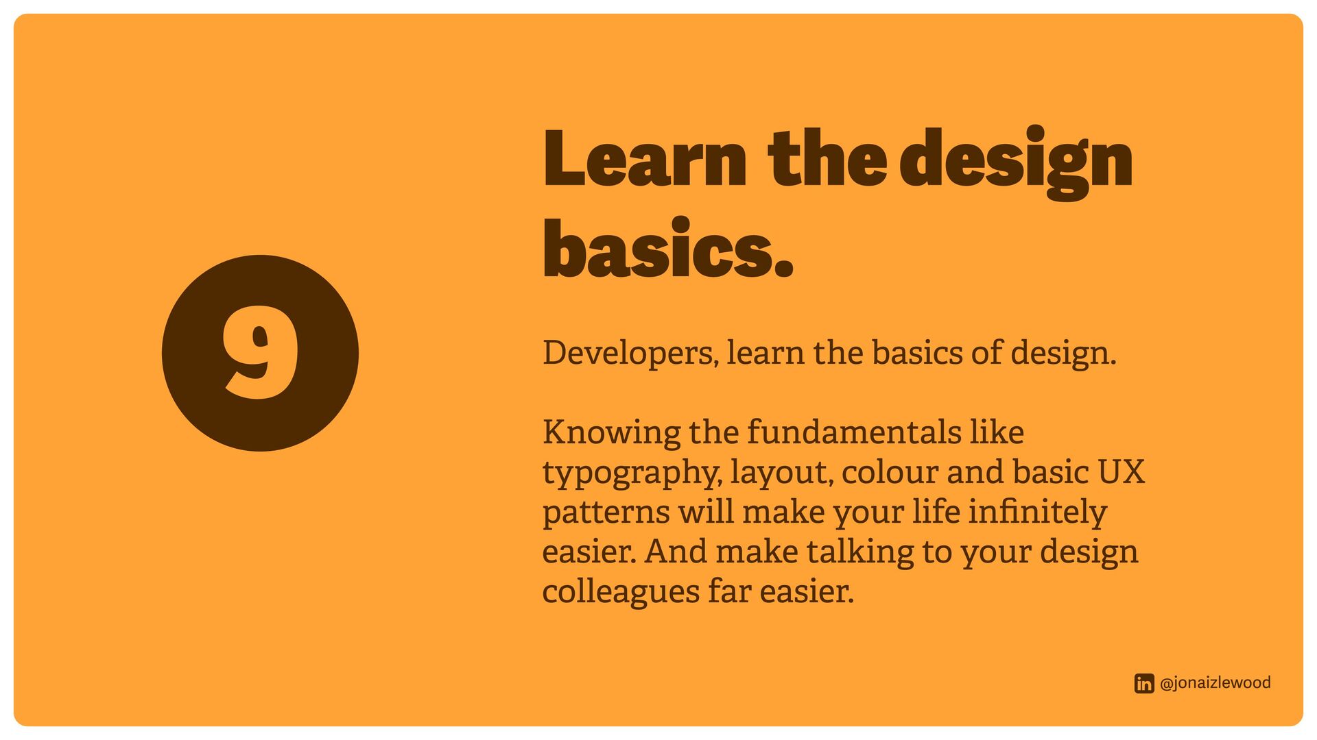 old chestnut, and for a reason. Learn HTML & CSS at least. If you’re feeling adventurous, level up to Javascript. You would expect an architect to know what materials they’re using for a building, or a carpenter to understand the type of wood they’re working with. 8 @jonaizlewood
