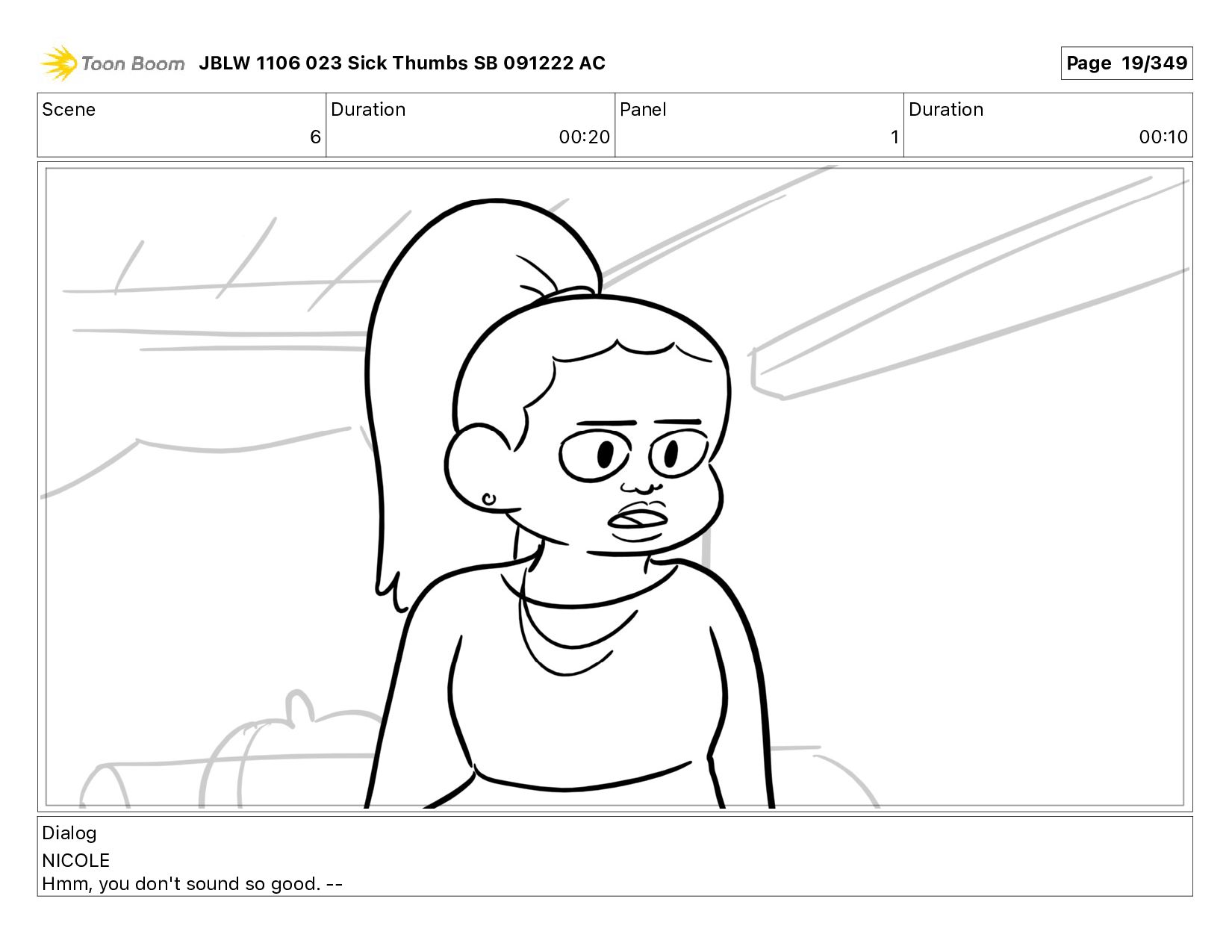 Dialog NICOLE Good morning, sweetie. JBLW 1106 023 Sick Thumbs SB 091222 AC Page 6/349