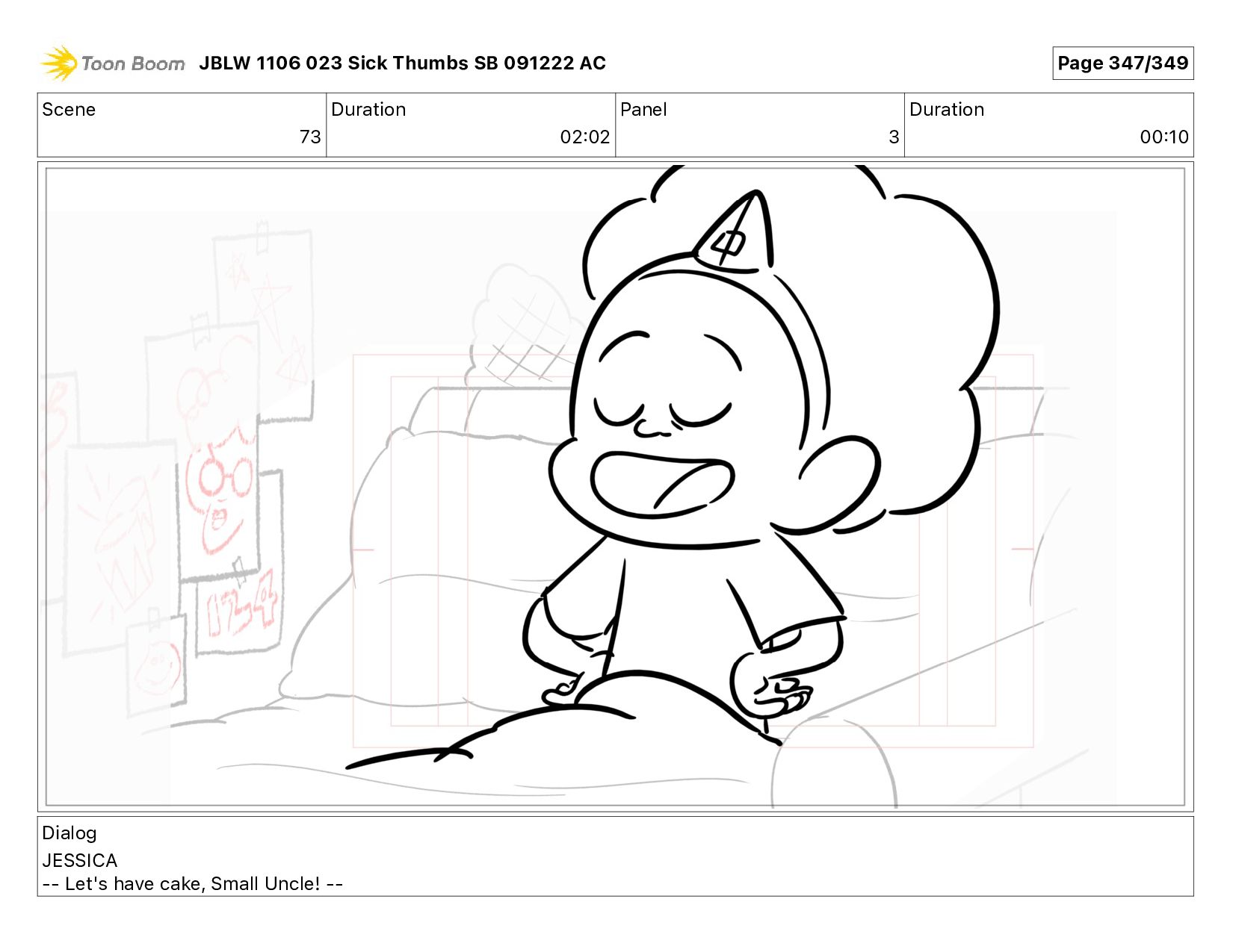 Dialog JESSICA -- Let's have cake, Small Uncle! -- JBLW 1106 023 Sick Thumbs SB 091222 AC Page 347/349