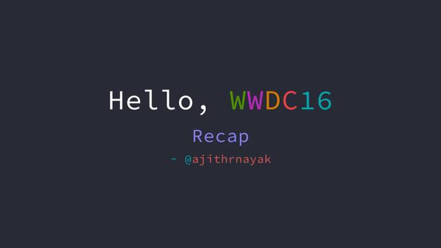 Retina Macbook Pro - Intel Skylake processors - USB Type-C ports (RIP Magsafe) - Dark blue Dazzling iPhone /* Software */ - More watch faces, more Apple apps for tvOS - iOS 10 & rename of mac OS X - WWDC app for OS X (before the event) - NightShift in macOS - Swift 3.0 ( we knew what’s coming) - Xcode 8